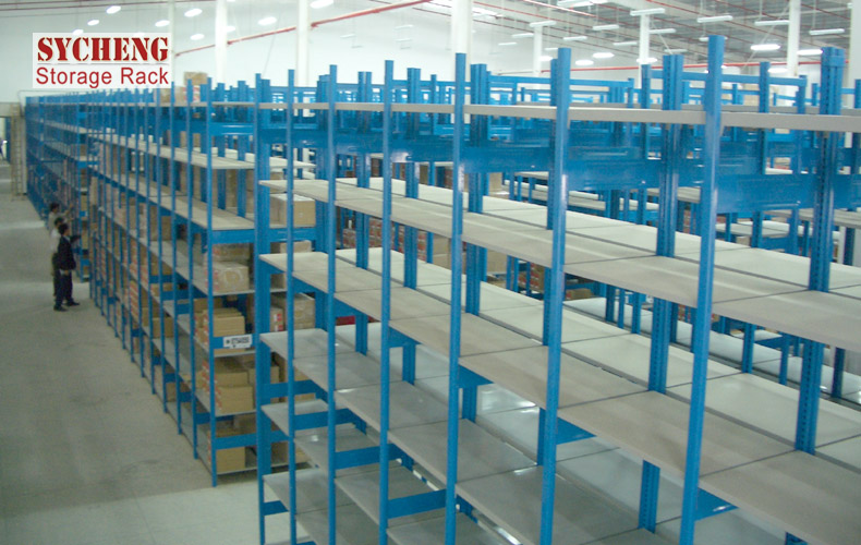 3.因?yàn)槭巧⒀b存取,不是采用托盤承載貨物,而且因?yàn)樨浳锎笮〔淮?,采用多立柱和橫梁的焊接形式來搭建貨架,上面鋪上木板。這樣能降低每套貨架的成本,還能保證貨物的安全存取。
