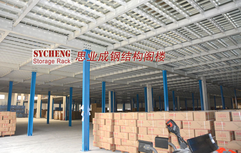 :一樓圓管/方管做立柱支撐,二層為平臺(tái);適用于庫(kù)房較高,堆放較密集的情況。(一般為托盤(pán)平地碼放)一樓叉車/堆高車存取,二樓人工/搬運(yùn)車存取的情況??膳浜仙灯脚_(tái)使用。